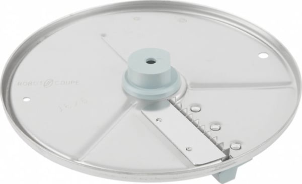 Підійде для нарізки моркви, кабачків, огірків, селери, кортоплі, редиски, буряків для приготування закусок, салатів, десертів, перших та других страв. Поміщається у робочу камеру професійної овочерізки на вал двигуна. Після використання легко знімається для чищення без використання інструментів. Для очищення диск потрібно помістити під струмінь холодної води. Диск виготовлений з алюмінію, ріжучі ножі – нержавіюча сталь.