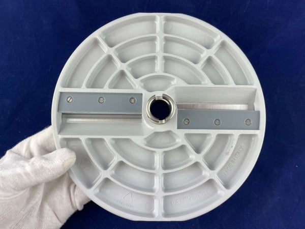 Поміщається в робочу камеру професійної овочерізки на вал двигуна. Після використання легко знімається для очищення без використання інструментів.