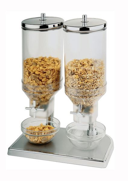 Диспенсер для мюслі застосовується в готелях, базах відпочинку та ін. Подвійний диспенсер для мюслі призначений для дозування сипких продуктів: мюслі, пластівців і т.д.