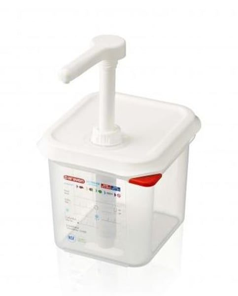 Пластиковий диспенсер відповідає всім вимогам щодо норм санітарії та безпеки HACCP та CE.