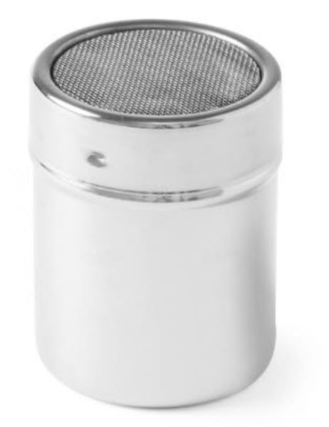 Диспенсер для пудри виконаний з нержавіючої сталі, яка характеризується високою стійкістю та дозволена для контакту з харчовими продуктами, кришка виготовлена з високоякісної нержавіючої сталі та пластику.