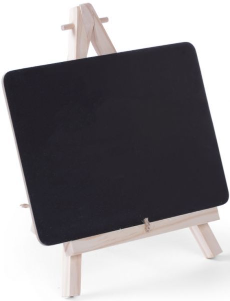 Штендер складається з дерев'яної стійки та чорної грифельної дошки.