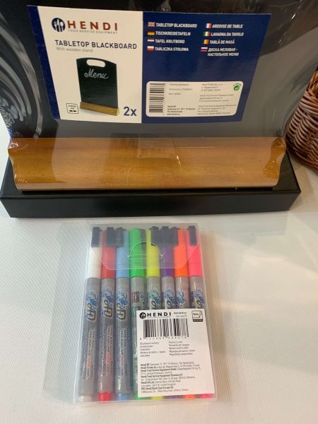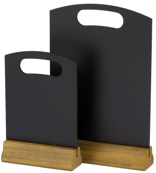 Табличка на стіл Hendi 664063 складається з дерев'яної підставки та чорної грифельної дошки. Зверху меню холдер обладнана вирізом для руки - для зручного транспортування.