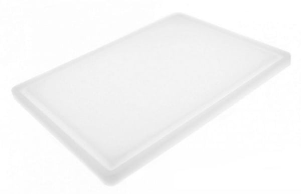 Пластикова дошка виконана розміром 400х300х18 мм в білому кольорі, відповідає міжнародним стандартам HACCP і має всі необхідні сертифікати.