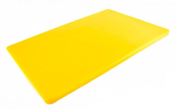 Згідно колірного кодування прийнятої в харчовій галузі, жовта кухонна дошка застосовується для нарізки сирої птиці.