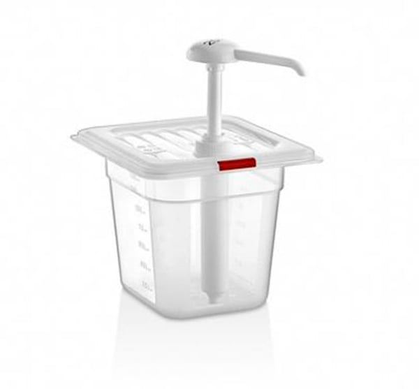 Пружинний насос для соусу, виготовлений із поліпропілену, дає 20 мл продукту за один прийом., його можна повністю заблокувати під час транспортування та після закінчення використання.