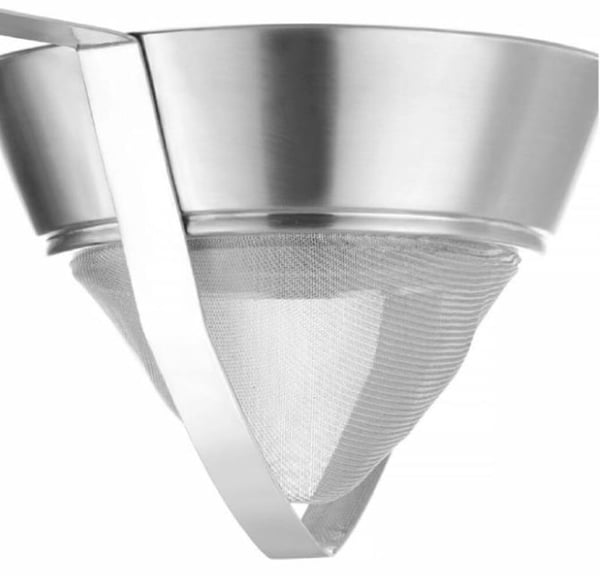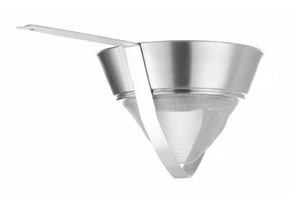 Друшляк конічний з дрібною сіткою має міцну конструкцію з широким окантуванням, яка сприяє обережному використанню - рідина не витікає, уберігає персонал від травмування.