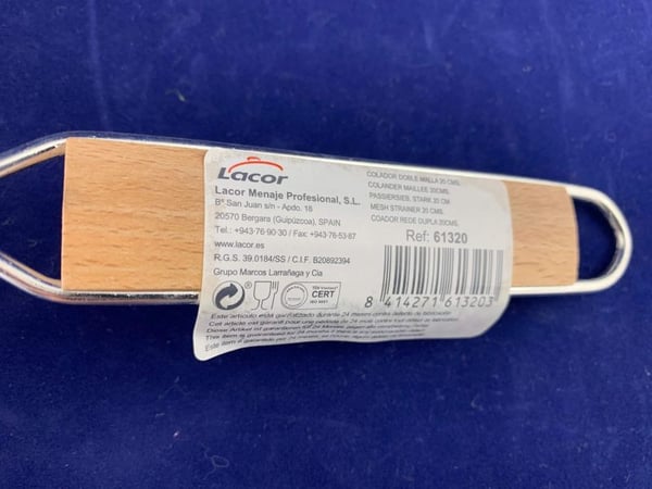 Міцна окантовка з ручкою та дерев'яною вставкою для зручності. Два гачки для звішування дуршлагу.