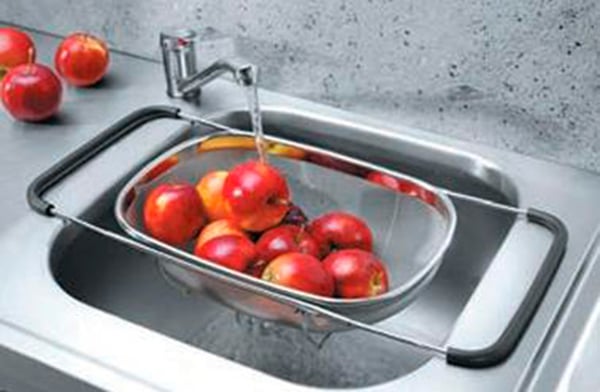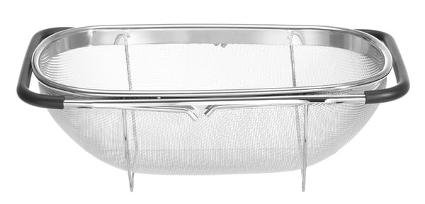 Ручки розсувні і не ковзають – покриті гумою. Опорні ніжки для розміщення безпосередньо в мийку, дрібна сітка.