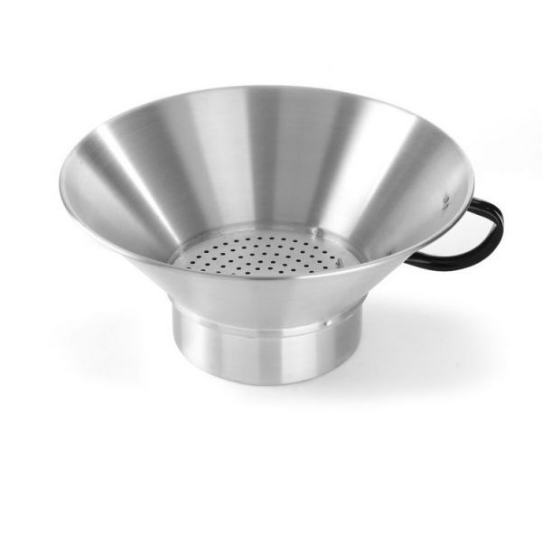 Друшляк для картоплі фрі, виконаний з алюмінію, має нерухоме дно зі знімним ситом.