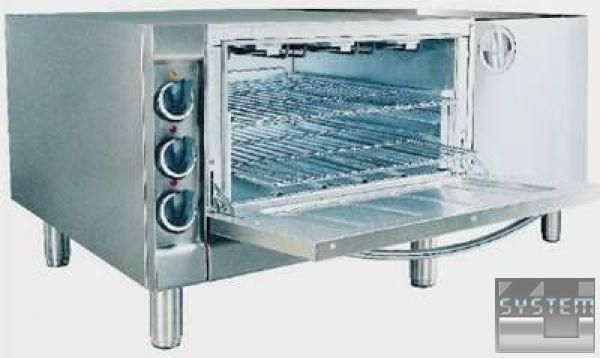 Зроблена із сатинованого хромонікелевого листа. Корпус виготовлений з алітованого листа товщиною 1,5 мм. Регульована опора із нержавіючих труб. Усі електричні прилади відповідають міжнародним стандартам. Подвійна стулка з н/с, ізольована. Регулює температуру в межах 50-300 ° C і окреме управління нижніх і верхніх нагрівальних елементів. Ізольована духова камера для мінімальної втрати тепла. Нижня частина з аркушів спеціально розроблена для рівномірного поширення тепла.
