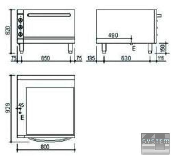 Зроблена із сатинованого хромонікелевого листа. Корпус виготовлений з алітованого листа товщиною 1,5 мм. Регульована опора із нержавіючих труб. Усі електричні прилади відповідають міжнародним стандартам. Подвійна стулка з н/с, ізольована. Регулює температуру в межах 50-300 ° C і окреме управління нижніх і верхніх нагрівальних елементів. Ізольована духова камера для мінімальної втрати тепла. Місткість духовки на 1 піддон розміром 2/1 НГ. Внутрішня частина виготовлена з алітованого листа зі ковзними частинами для 3 піддонів. Нижня частина з аркушів спеціально розроблена для рівномірного поширення тепла.