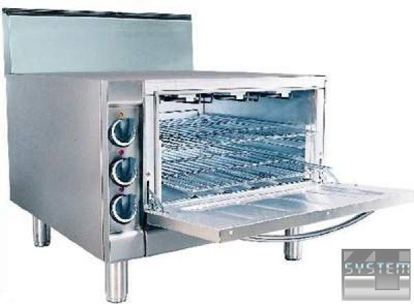 Зроблена із сатинованого хромонікелевого листа 18/8 н/с. Регульована опора із н/с труб. Усі електричні прилади та механізми відповідають міжнародним стандартам. Подвійна ізольована стулка із листа. Регулює температуру в межах 50-300 ° C і окреме управління нижніх і верхніх нагрівальних елементів. Ізольована духова камера для мінімальної втрати тепла. Розміри внутрішньої частини духовки 975*640*300 мм з об'ємом приготування 1 піддону. Внутрішня частина виготовлена з алітованого листа зі ковзними частинами для 3 піддонів. Нижня частина з аркушів спеціально розроблена для рівномірного поширення тепла.