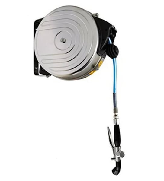 Котушка виконана з високоякісної нержавіючої сталі, душ кріпиться на стіну, має насадку-пістолет яка подає струмінь води під тиском, що дозволяє ефективно очищати стіни та підлогу.