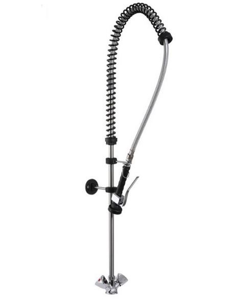 Регульована опорна стійка. Гнучкий шланг у нержавіючій пружині з виливом. Застосовується в індустріальній кухні, промислових посудомийних машинах, а також використовується в мийках для миття овочів та фруктів.