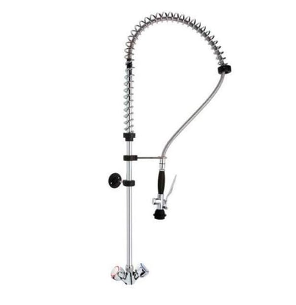 Регульована опорна стійка. Гнучкий шланг в нержавіючої пружині з виливом. Застосовується в індустріальній кухні, в промислових посудомийних машинах, а також використовується в мийках для миття овочів і фруктів.