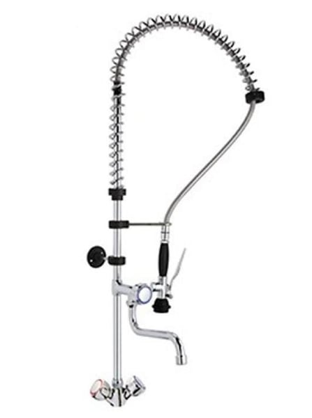 Регульована опорна стійка. Гнучкий шланг в нержавіючої пружині з виливом. Застосовується в індустріальній кухні, в промислових посудомийних машинах, а також використовується в мийках для миття овочів і фруктів.