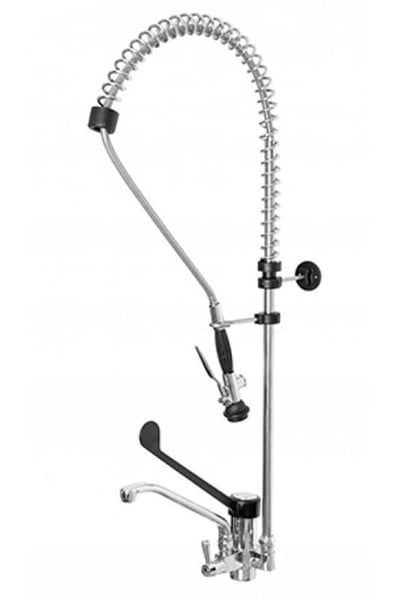 Ліктьове управління змішувачем. Душуючі пристрої з фіксатором, що забезпечує постійний натиск води і звільняючи руку мийника. Фіксатор легко включається і вимикається одним пальцем.