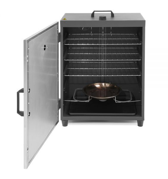 Корпус коптильні Hendi виконаний з нержавіючої сталі з подвійними ізольованими дверима, які закриваються за допомогою магніту.