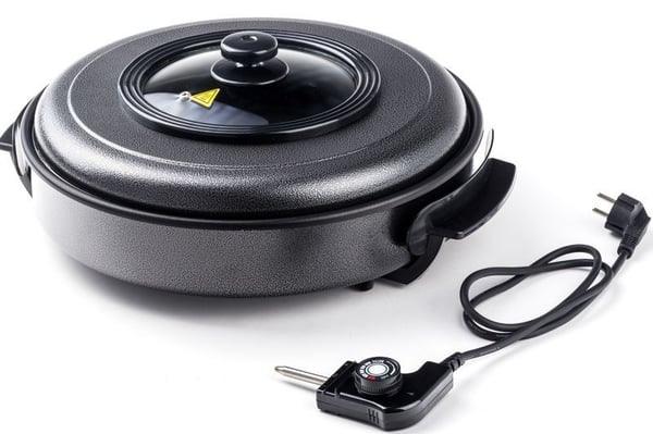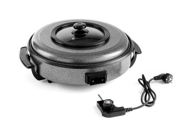 Мультисковорода Hendi із серії PARTY PAN, виготовлена з алюмінію, в якій є антипригарне покриття. У комплект входить кришка з прозорою серединою та мережевий шнур із регулятором температури. Термоізольовані ручки дозволяють переносити сковорідку і запобігають отриманню опіку.