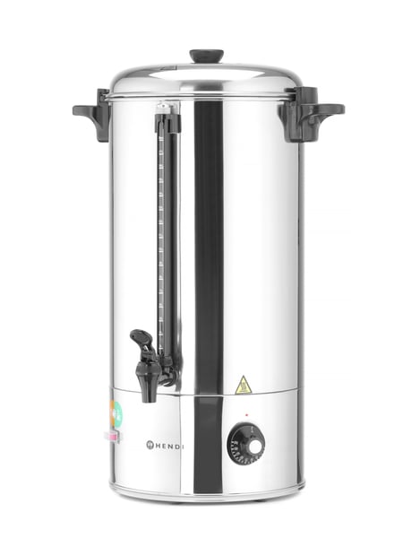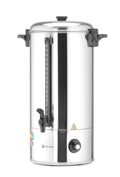 Кип'ятильник Hendi 209899 - кип'ятильник, призначений для приготування кип'яченої води з температурою близько 100°C, яка в подальшому буде використовуватися підприємствами громадського харчування для приготування глінтвейну, чаю, кавових напоїв та підігріву води. Завдяки своєму унікальному дизайну та акценті на деталях - цей апарат привертатиме увагу на будь-якому заході.