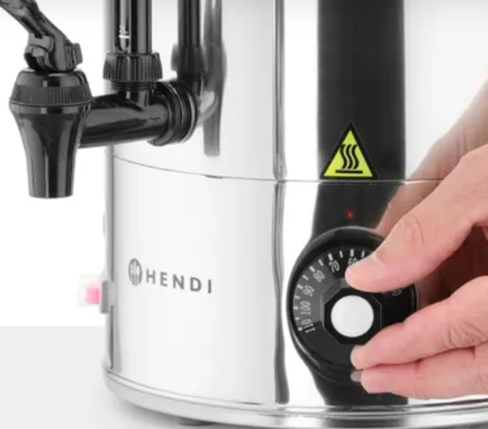 Електрокип'ятильники Hendi - ідеальний вибір, коли потрібна впевненість у результаті. За температурою окропу постійно стежить аварійний термостат. Зменшене утворення накипу на повністю гладкій внутрішній поверхні. Прихований ТЕН.