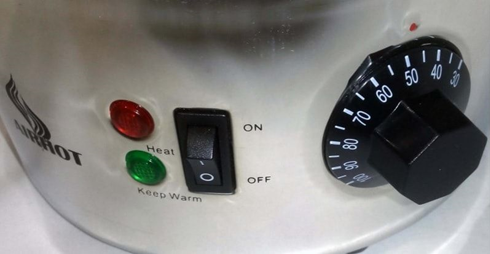 Електрокип'ятильник Airhot WB-10 має термостат від 30 до 110°C. Функція відключення за відсутності води не передбачена.
