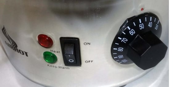 Електрокип'ятильник Airhot WB-15 має термостат від 30 до 110°C. Функція відключення за відсутності води не передбачена.