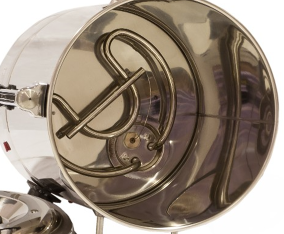 Внутрішня гладка поверхня електрокип'ятильника дозволяє звести до мінімуму утворення накипу. Виготовлений із нержавіючої сталі.
