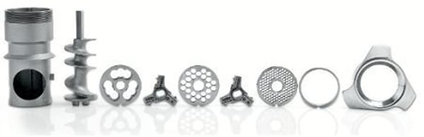 У комплект входить стандартний ріжучий інструмент, завантажувальний лоток, штовхач, 3 шт. решітки з нержавіючої сталі з діаметром 4,5 та 8 мм, нульові грати.