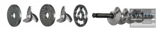 Система "Унгер" з 3-х грат та 2-х ножів для ефективної роботи електром'ясорубки з вкладеною сировиною.