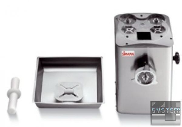 М'ясорубка Sirman, що охолоджується. призначена для отримання охолодженого фаршу . Для цього в конструкції м'ясорубки передбачений термоелектричний модуль потужністю 70 Ватт, м'ясоприймач, що охолоджує, шнек (вал, прокручує фарш) і головка м'ясорубки (вихідний отвір). Професійна м'ясорубка Sirman дозволяє рівномірно подрібнити м'ясо, створюючи бажану консистенцію та отримати фарш високої якості. Компактна м'ясорубка з високими експлуатаційними властивостями.