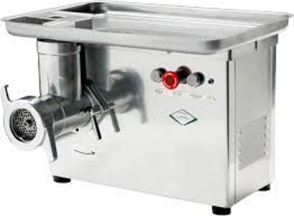 Перероблений продукт з чаші вручну подається до горловини корпусу м'ясорубки, а потім штовхачем до шнека, що обертається. Захоплюваний шнеком продукт послідовно проходить через набір ріжучих інструментів.