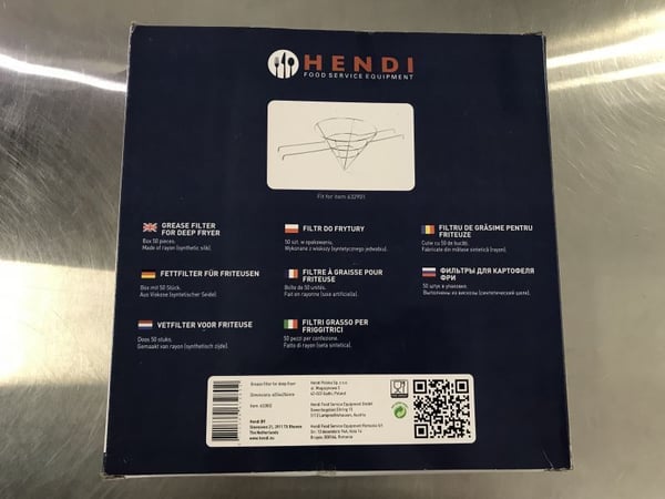 Віскозний фільтр використовується спільно з конусним власником Hendi 630901 , вони ідеально підійдуть для відціджування надлишків жиру з фритюрниць. Тим самим сприяють професійній подачі морепродуктів, картоплі фрі та смажених овочів.