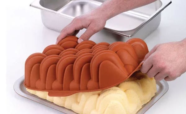 Силіконова форма легко знімається з готового десерту, зводячи ризик його пошкодження до мінімуму. Форма відрізняється винятковою гнучкістю, зберігає свою оригінальну форму навіть у складеному стані і не створює білих заломів на згинах.