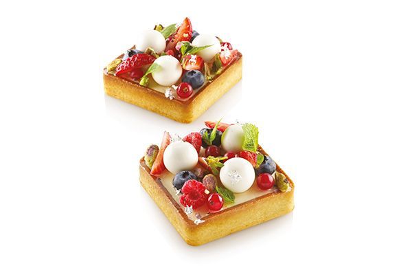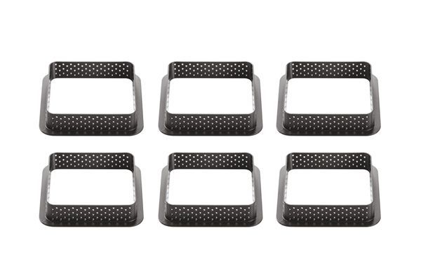 Комплект складається з 6 квадратних форм розміром 80х80х 20 мм , виготовлених з композитного термопластичного матеріалу, що не деформується, придатних для використання в печі для реалізації основи, що дозволяє покласти мус або крем на пісочне тісто.