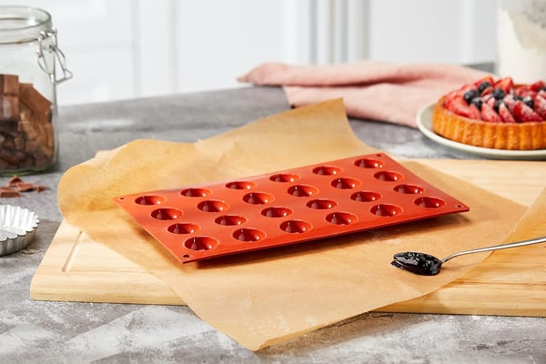 Силіконова форма SEMISFERA Silikomart SF005/C дає змогу створювати оригінальні вишукані елементи десертів, а об'єми кожної лунки дають змогу отримати їх одразу 24 штук. Форму використовують як форму для випічки, форму для кексів, форму для семіфредо. Ця форма ідеально підходить для створення оригінальних кондитерських виробів: елегантних мусів і парфе, надаючи кондитерам можливість реалізувати найсміливіші творчі задуми.
