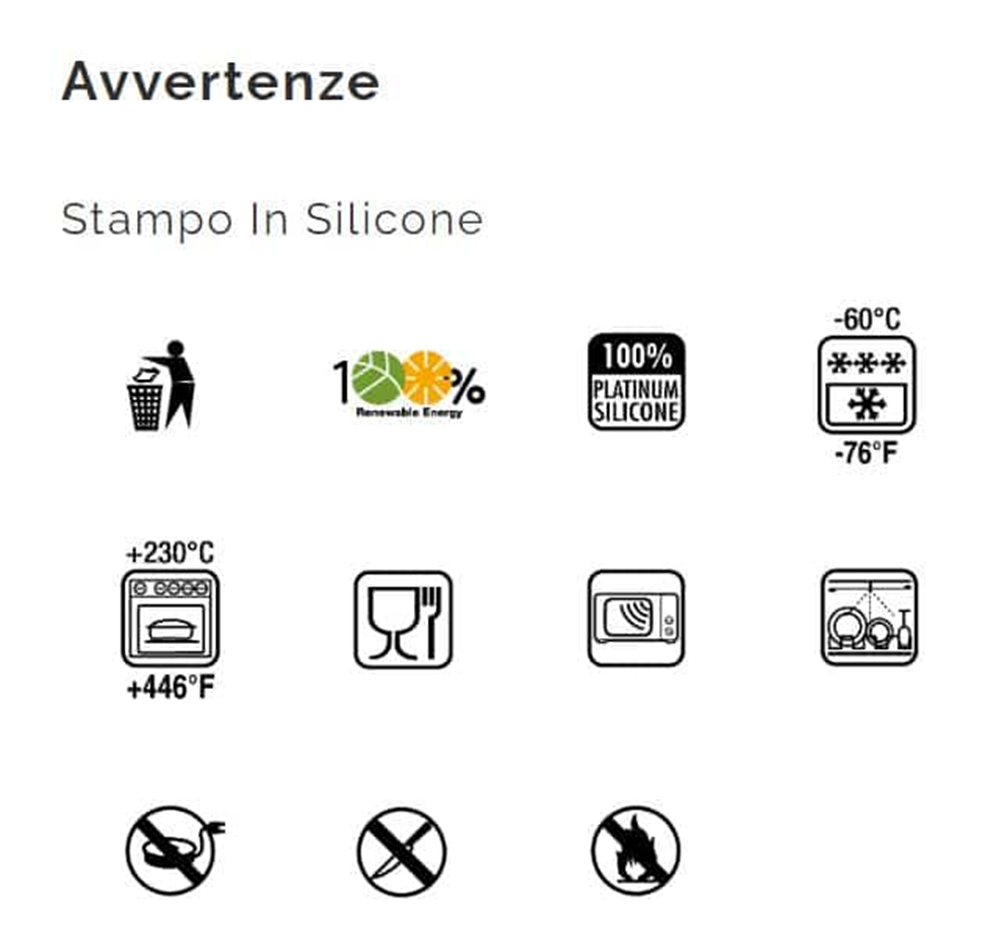 Silikomart використовує чистий силікон, який є безпечним, хімічно інертним і відповідає найсуворішим стандартам харчової безпеки.