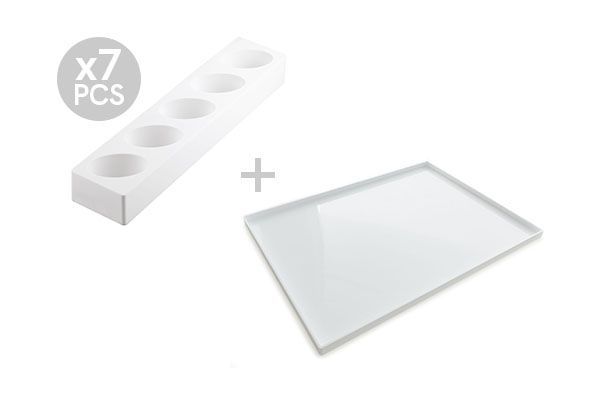 Комплект складається з семи силіконових форм розміром 76x47 h45mm і 5 форм об'ємом 125 мл. Форма відрізняється винятковою універсальністю, вона підходить для використання в духовці, холодильнику та шоковому охолодженні, а також при температурі від -60 °C до +230 °C.