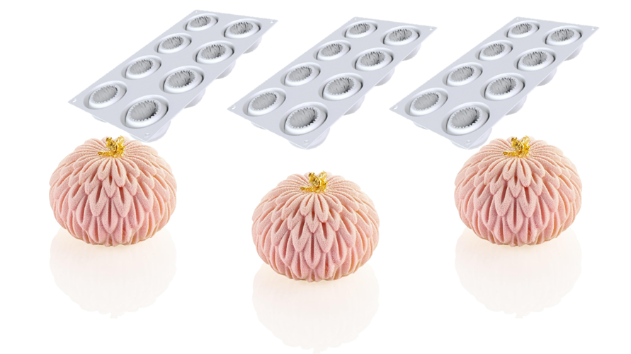 Серія силіконових форм "KIKU" ідеально підходить для створення витончених десертів у формі сфер з оригінальними візерунками на поверхні. Завдяки компактному об'єму порції 70 мл, вона забезпечує високу якість та високу продуктивність приготування кожної порції десертів (мусів, парфе, заморожених ласощів тощо). Форма "KIKU" ідеально підходить для створення однопорційних десертів, що надасть оригінальності та витонченості вашим однопорційним вітринам.