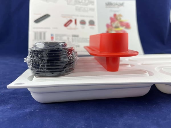 Може бути взята з духовки/мікрохвильової печі та негайно поміщена в холодильник, морозильну камеру та навпаки. Виготовлена із рідкого силікону LSR, їх можна використовувати 3000 разів. Вища стабільність і тепловий опір у порівнянні з металевими формами.