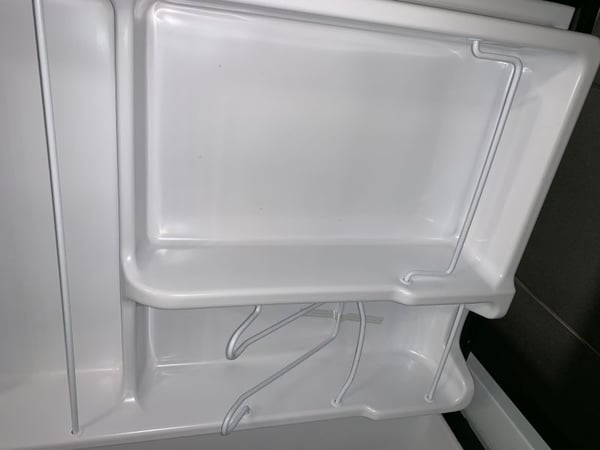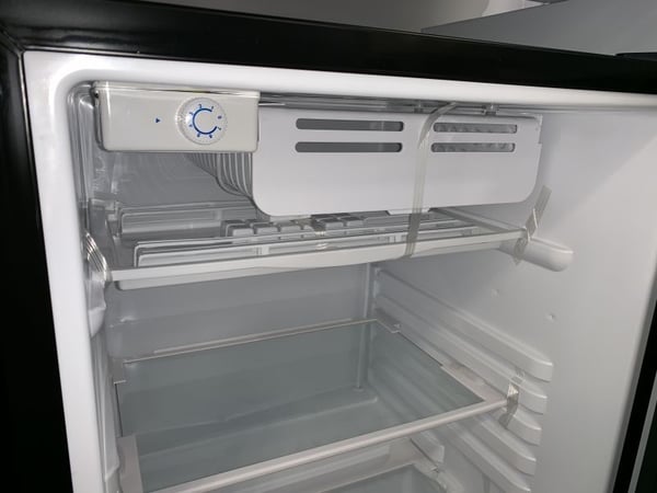 Корпус фригобару виконаний із забарвленої в чорний колір сталі, усередині фригобар виготовлений із пластику. Двері мінабару глухі, легко перенавішуються для відкривання в інший бік.