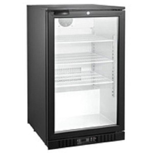 Засклена конструкція дверей та внутрішнє освітлення камери вигідно надасть викладку товару і тим самим наочно дозволить визначити місце розташування потрібного продукту, не відчиняючи дверцят – це дозволяє зберегти внутрішній температурний режим камери. Корисний об'єм пристрою 138л з температурою, що підтримується, +2 до +8°С. Скляні двері. Автоматичний термостат. Корпус бару виконаний із забарвленої в чорний колір сталі, усередині фрігобар виготовлений із алюмінію.