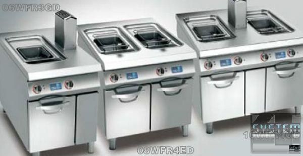 Электрическая фритюрница на две емкости по 9 л каждая Angelo Po 08WFR4ED на нейтральном шкафу относится к тепловой модульной линии OMEGA 1100.