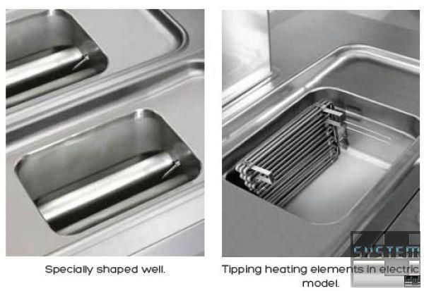 Нагревательные элементы из нержавеющей стали AISI 304 расположены внутри ванной и могут выдвигаться вертикально для легкой очистки.