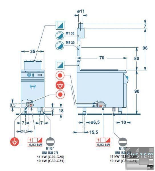 Газовая напольная отдельностоящая фритюрница Angelo Po 0G1FR3GD с электронным управлением относится к тепловой модульной линии GAMMA 700. Поверхность из 18-10 нержавеющей стали, толщиной 12/10 мм.