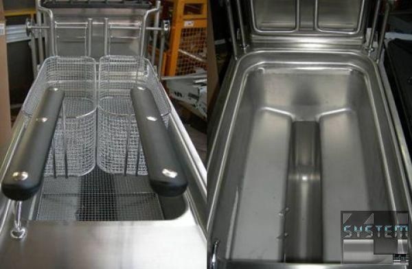 Ванная для масла из нержавеющей стали AISI 304 толщиной 10/10 мм полностью приварена в рабочую поверхность.
