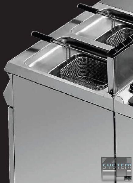 Электрическая настольная фритюрница Angelo Po 1G0FR4E на две емкости по 9 л каждая относится к тепловой модульной линии GAMMA 700. Поверхность из 18-10 нержавеющей стали, толщиной 12/10 мм.