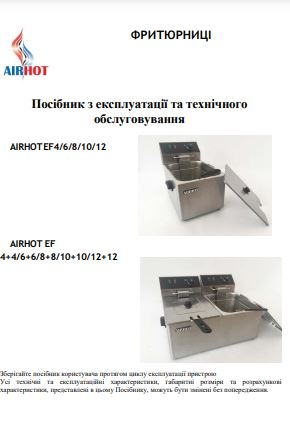 Інструкція до фритюрниці AIRHOT EEF6