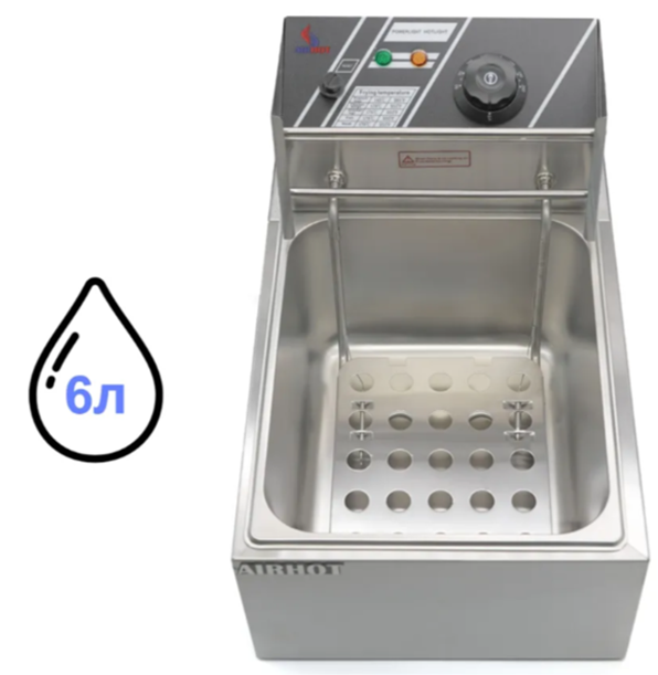 Фритюрниця Airhot EEF6 - це професійне кухонне обладнання, яке дозволяє обсмажувати різноманітні кулінарні вироби шляхом занурення їх у великий обсяг гарячого масла. В результаті приготування, блюдо набуває хрусткої золотавої скоринки, при цьому зберігає досить вологості і виходить особливий ароматний смак.